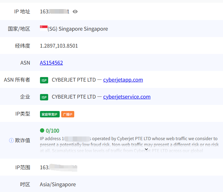 从APNIC新申请的全新IP段,15年没被使用过的IP段,骨灰级纯净。新加坡ISP住宅上线开售,加量不加价。新加坡产品免费送5个纯净原生IPv6地址, 此段v6对中国移动方向路由非常美丽,中国移动ipv6直连平均60ms左右。