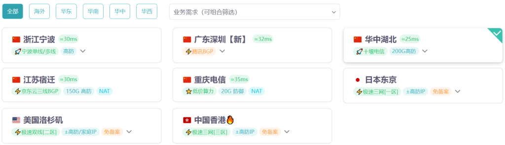 雨云 VPS 主要覆盖国内及海外四大区域,每条产品线的特点如下: