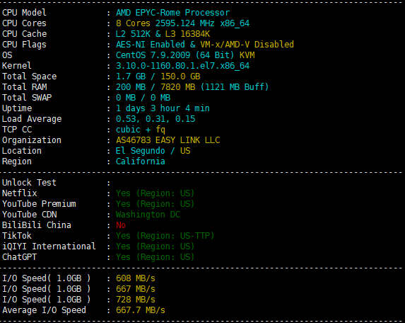 | 套餐3 | 2核 | 8GB | 60G SSD | 4TB@1Gbps | KVM | 1个 | $7.92/月 购买链接 |