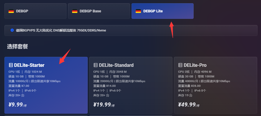 如果Mini套餐售罄,你还想要便宜的,可以选择DEBGP Lite套餐: