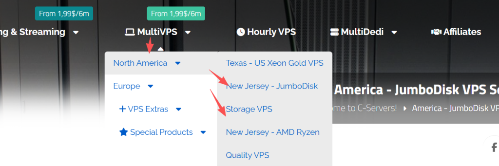 这家网站产品布局有点乱,首页MultiVPS可以查看绝大部分产品,如下图所示: